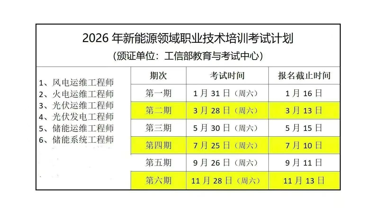 工信部教育与考试中心新能源领域职业技术培训项目: