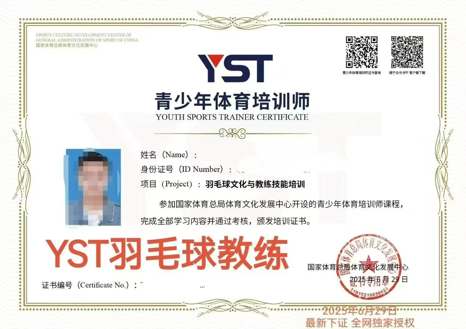 YST青少年体育培训师 羽毛球文化与教练技能培训 教练员证书报名办理入口
